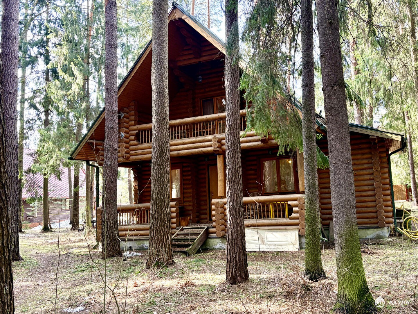 Уютный дом из оцилиндрованного бревна (122, 3 кв. м) — атмосфера тепла и натуральности:Первый этаж: просторная кухня‑гостиная с камином (идеально для вечеров с друзьями), комната, кладовая и совмещённый санузел.Второй этаж: две большие спальни, из одной — выход на балкон с панорамным видом на многовековые сосны.Терраса с выходом из кухни-гостинной - где вы можете поужинать теплым летним вечером в кругу семьи.Комфорт круглый год: отопление от многотопливного котла De Dietrich (сейчас на дизельном топливе, есть возможность подключения газа — он проходит по границе участка).Чистая вода: собственная скважина с комплексной системой водоочистки.Канализация: септик закрытого типа, не требующий откачки.