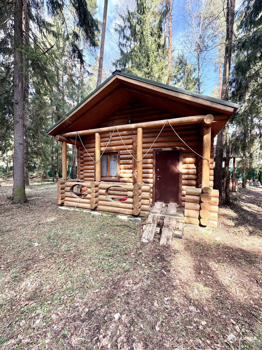 Просторный участок (43×62 м) — ровный, сухой, с вековыми соснами:Отдельная баня (40 кв. м) из того же бревна, что и дом: душевая и комната отдыха — релакс после активного дня.Дровница — запас дров всегда под рукой.Летний хозблок — для инвентаря, велосипедов и сезонных вещей.