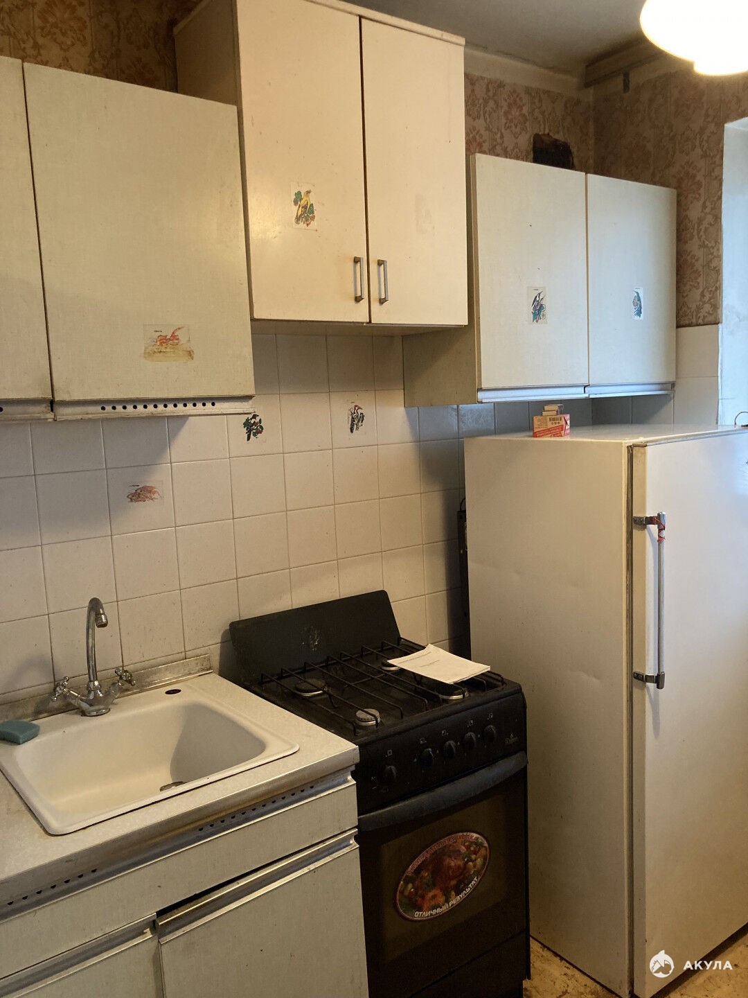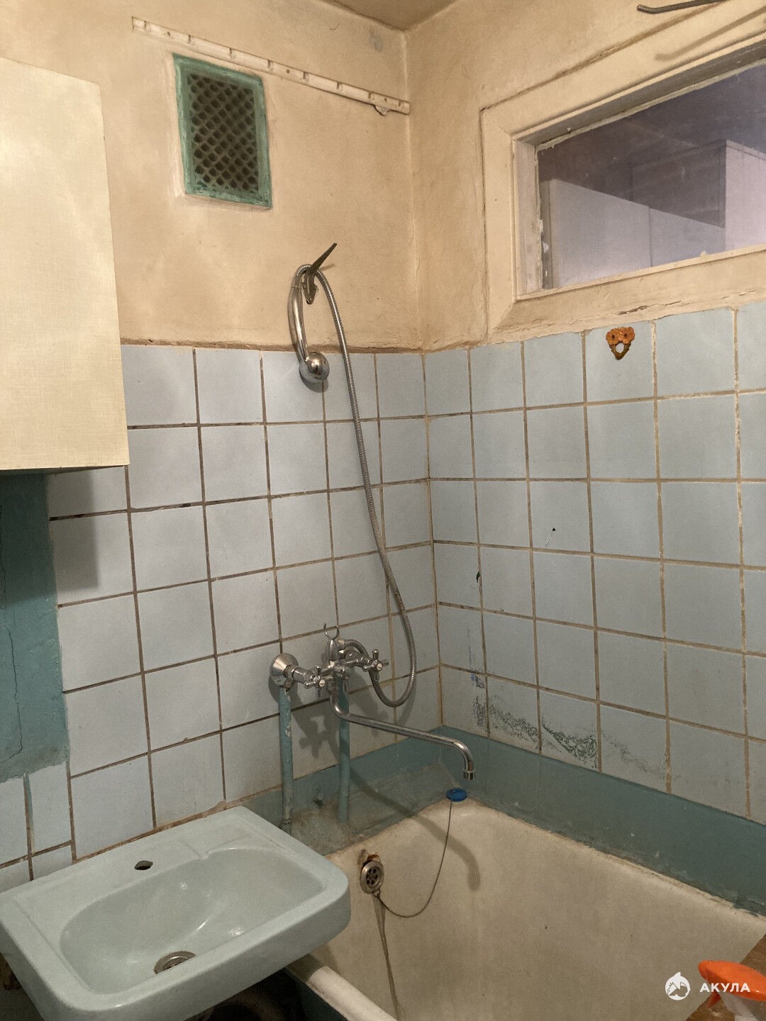Общая площадь 27, 4 кв.м.: комната 16 кв.м., кухня 5 кв.м., совмещенный санузел, без балкона.