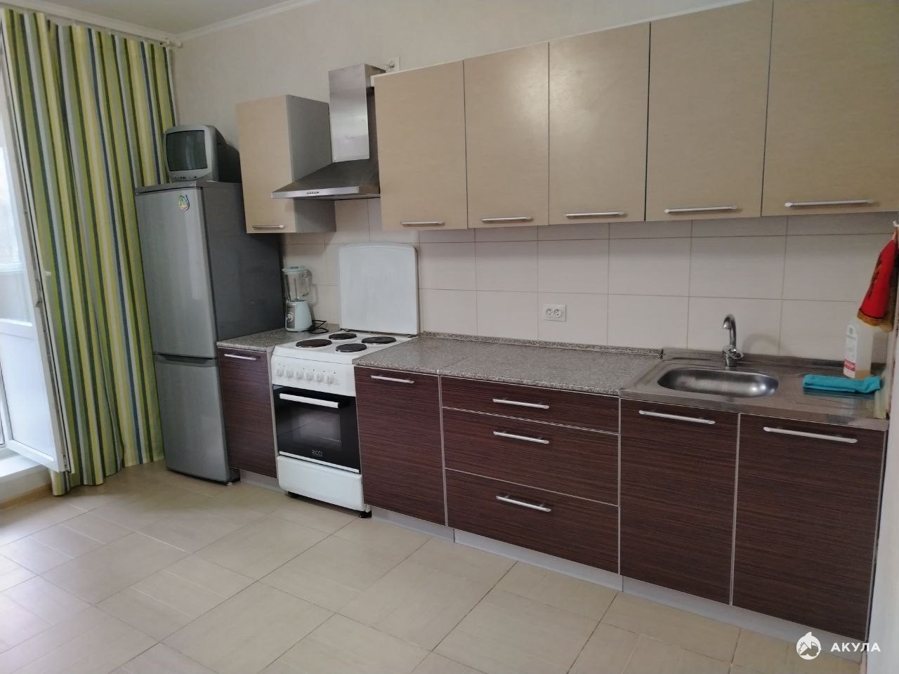 В квартире имеется вся необходимая техника и мебель- холодильник, электроплита с духовкой, стиральная машина, кухонный гарнитур, две кровати, гардеробная и прочее. Все обсуждаемо.